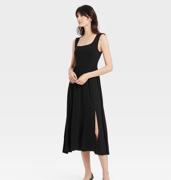 The midi-length options might be my personal favorites in the entire A New Day black dress collection. There’s something about that below-the-knee length that feels both modern and timeless, professional yet approachable. These dresses work equally well with sneakers for a casual weekend look or with heels for evening plans.