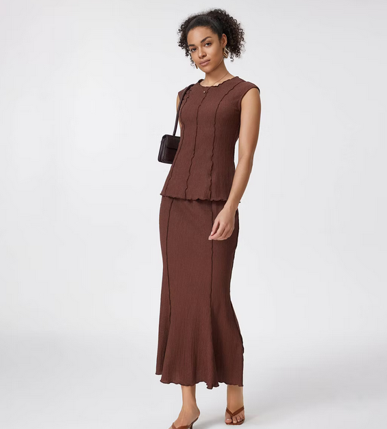 - Women’s short sleeve textured blouse in brown