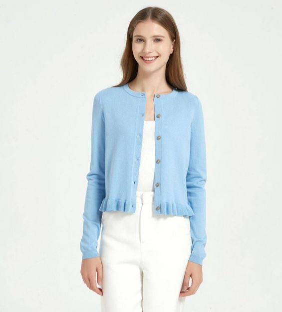 - Ruffle hem front button cardigan