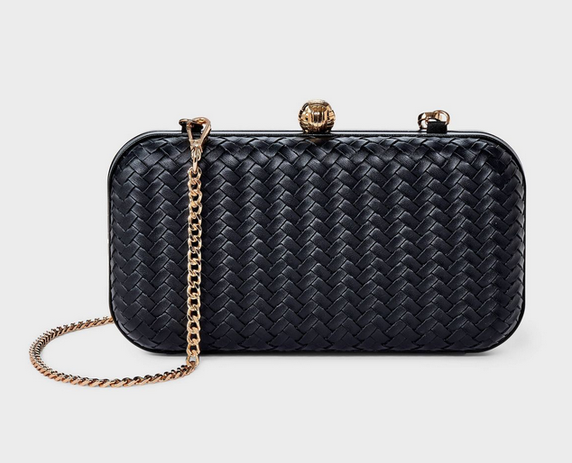 • Woven crossbody clutch bag with chain strap handle