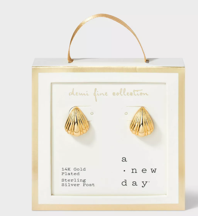 14K Gold Plated Shell Stud Earrings – A New Day™ Gold: Nickel-Free, Polished Finish, Gift Box Included