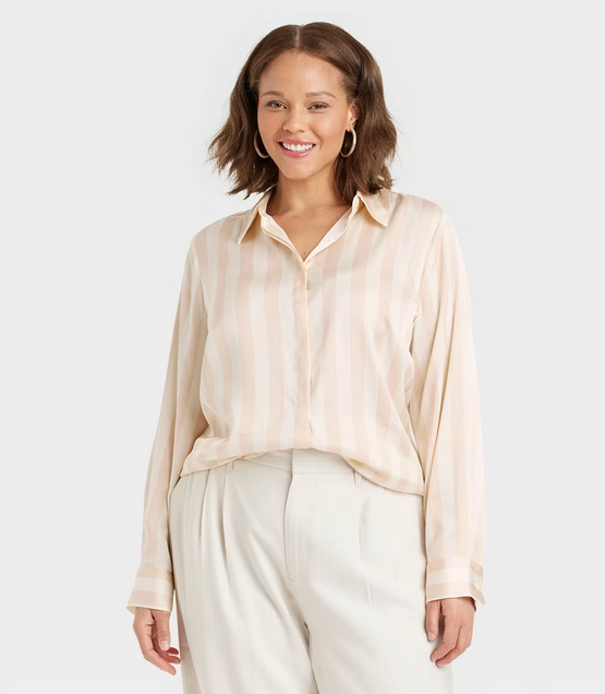 While not technically traditional shirts, the button-front A New Day long sleeve shirts deserve mention for their versatility. These pieces can be worn fully buttoned as standalone tops, open as light cardigans, or tied at the waist for a more casual, cropped silhouette.