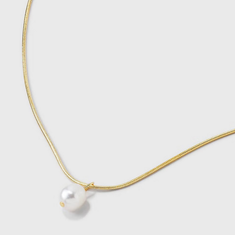 14k Gold Plated Freshwater Pearl on Snake Chain Necklace – A New Day™ Gold: Lobster Claw Clasp, 16-19″ Length
