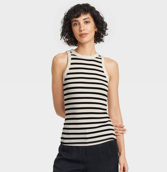 - Rib-knit tank top makes for a classic wardrobe staple
