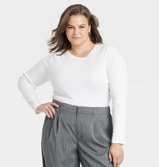 Women’s Slim Fit Long Sleeve Ribbed T-Shirt – A New Day™