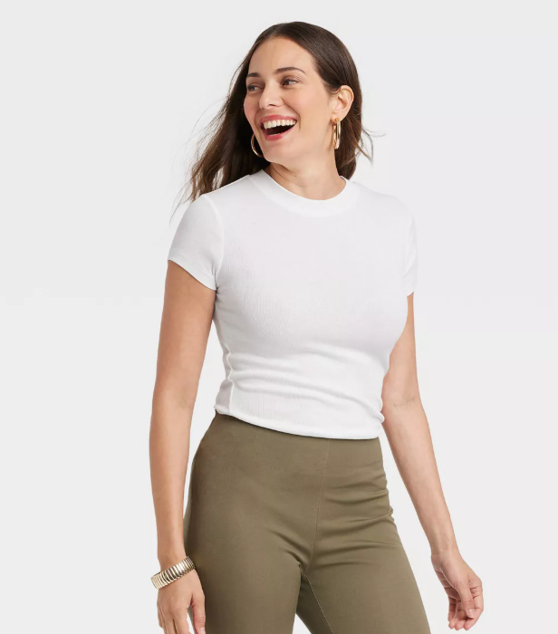 Women’s Slim Fit Short Sleeve Ribbed T-Shirt – A New Day™