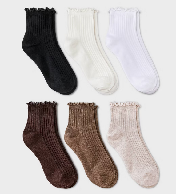 - 6-pack of Women’s Lettuce Edge Ankle Socks