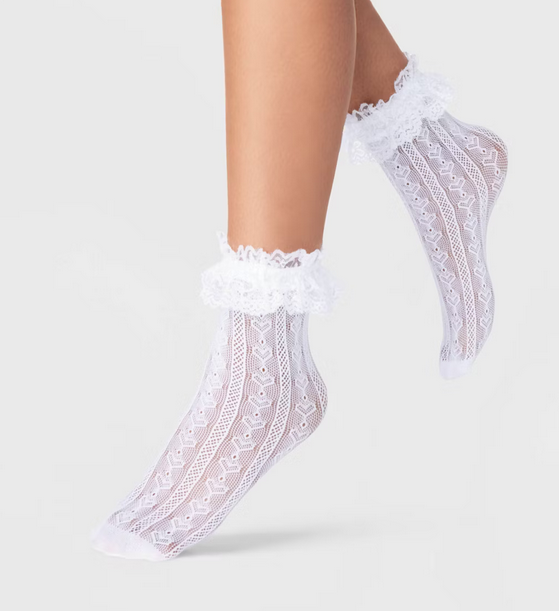 Women’s Knit Heart Sheer Anklet Socks with Lace Ruffle