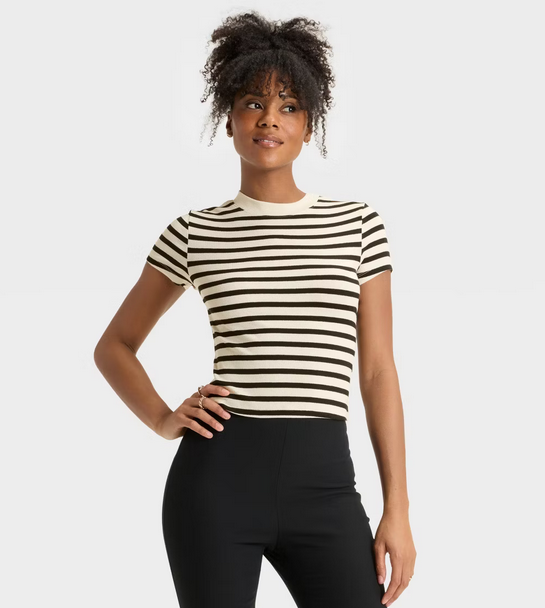 - Short-sleeve ribbed tee